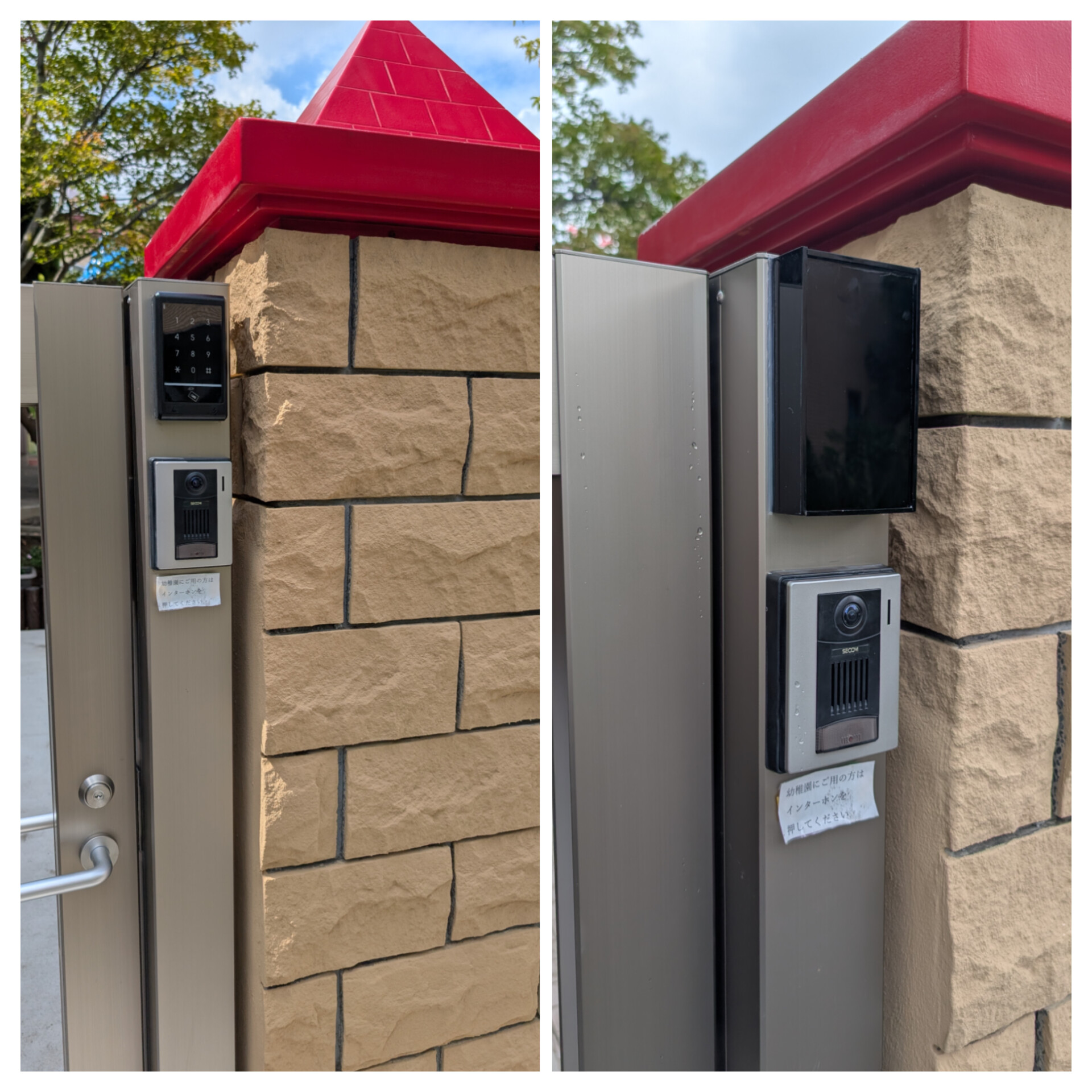 某幼稚園の門扉に電気錠システムを設置後、テンキーリーダーのテンキーを見えなくしてほしいと理事長からの依頼!!元々テンキーは使わずタグのみでの使用だったので見えなくても問題はなかった・・・既製品のカバーを使うとごっつくなってしまうのでそれならばとアクリルで作っちゃいました。